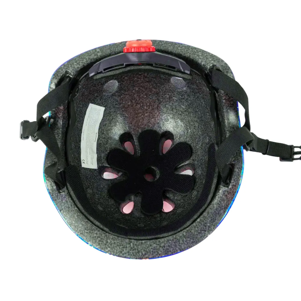 Шлем Tech Team XTR 1.0 с синим окрасом - это смелое и яркое решение для активных любителей экстремальных видов спорта. Принт с белыми собачками и абстрактными кляксами делает его уникальным и запоминающимся. Вентиляционные отверстия обеспечивают комфорт и свежесть во время катания, а регулировка размера шлема и его быстрая фиксация гарантируют идеальную посадку. Шлем идеален для катания на трюковом самокате, велосипеде BMX, роликах или скейтборде, обеспечивая максимальную защиту.