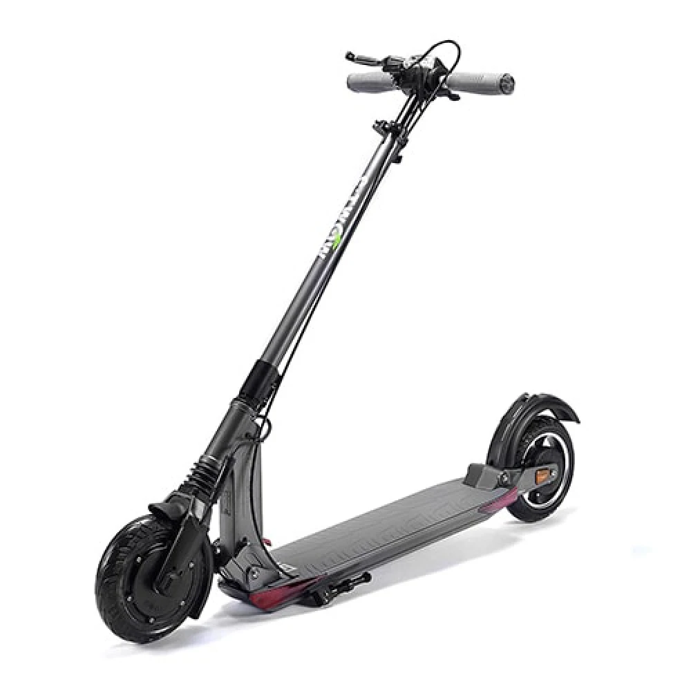 E-twow S2 GT Sport имеет превосходный баланс между ценой, качеством и комфортом использования. Электросамокат имеет компактную складную конструкцию, позволяющую комфортно хранить и транспортировать выключенный девайс. Алюминиевая рама самоката позволяет скинуть его вес до 13 килограмм без потери прочности, ведь максимально-допустимая нагрузка – 110 кг! Его малый вес и большая мощность способны разогнать S2 GT Sport до 46 км/ч. Для наибольшей отдачи мотора в этой модели установлен ёмкий аккумулятор, дающий проехать до 35 километров на одной зарядке.