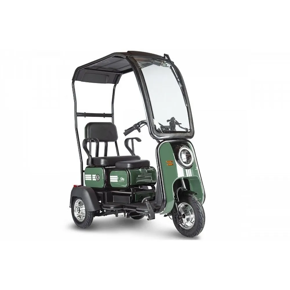Компактная эргономичная модель для коммерческого использования оснащена лобовым стеклом, крышей, объемным бардачком под сиденьем и с задней части тс. Технические характеристики юркого трицикла представлены двигателем мощностью 800 Вт, способного развивать скорость до 25 км/час и преодолевать 30 км пути.