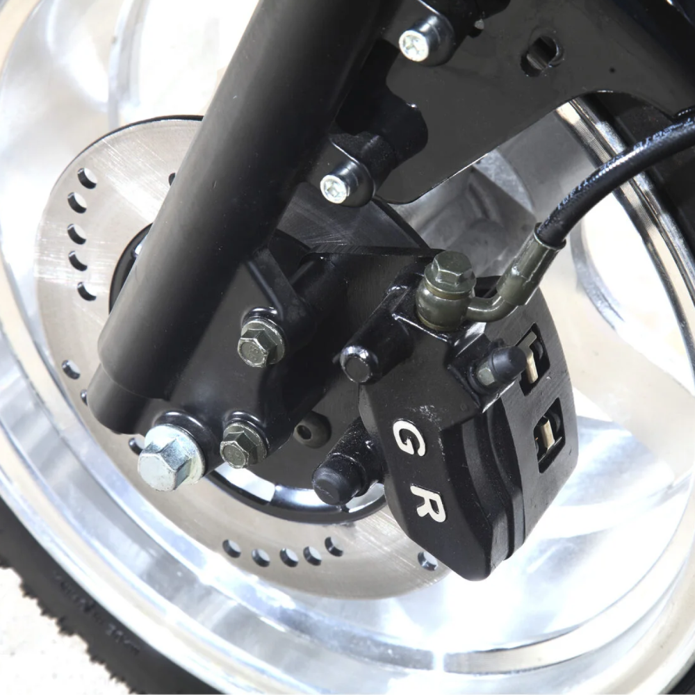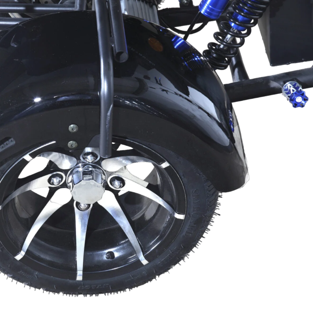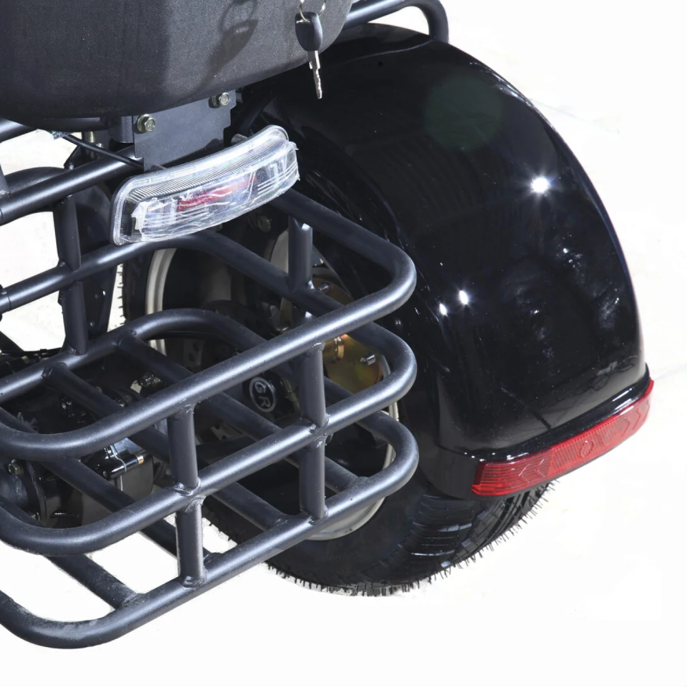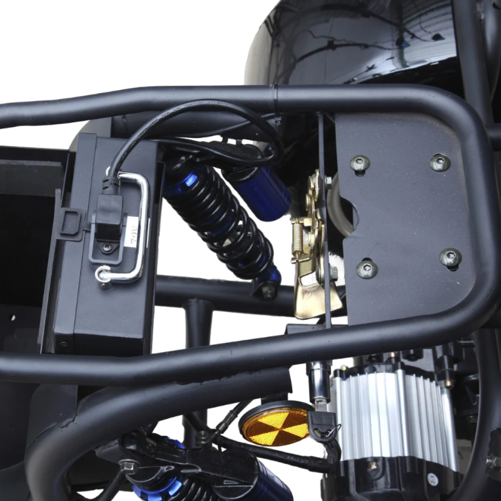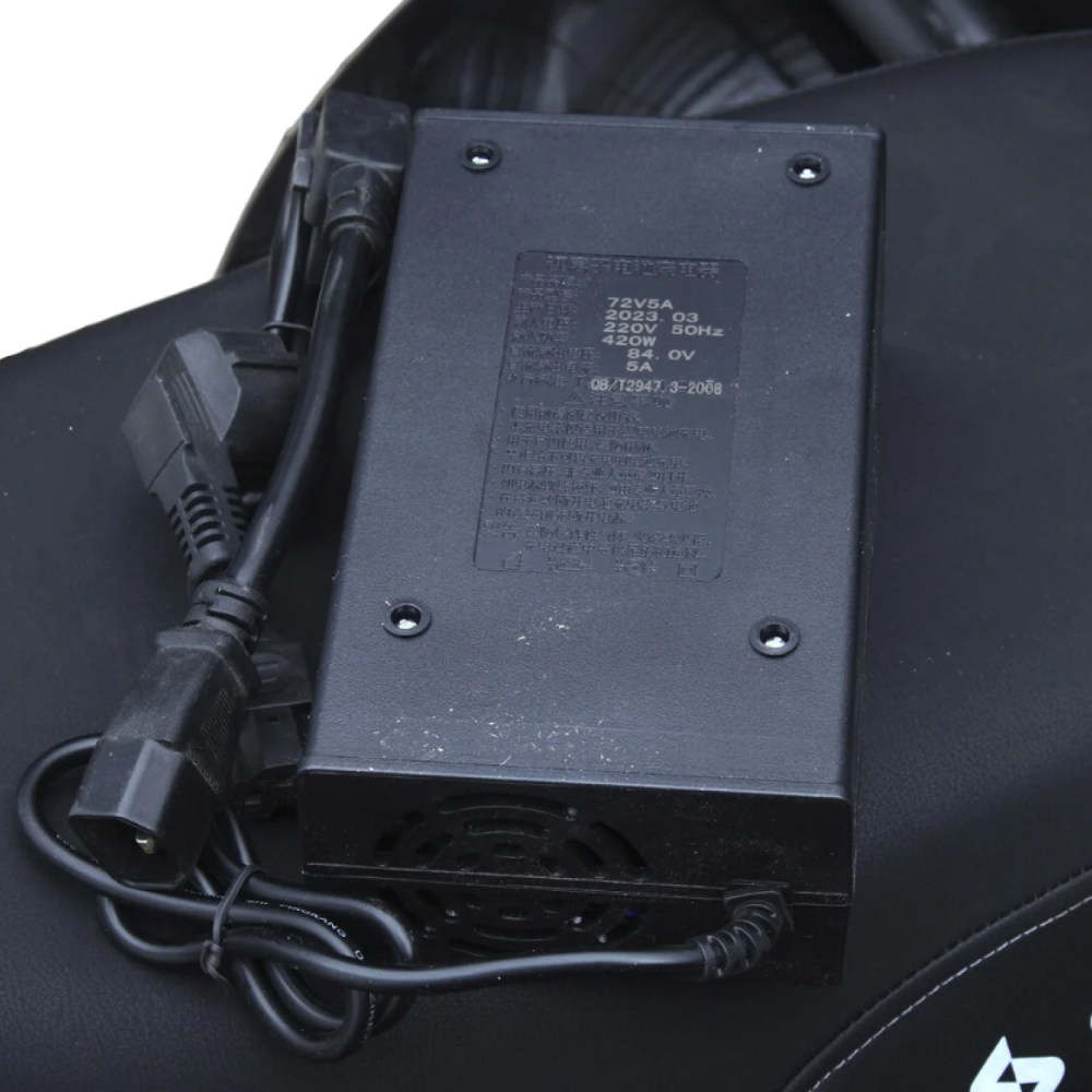 Мотор 3000 Вт разгоняет «Марусю» до 59 км/ч, а аккумулятор Li-Ion 72V 18Ah обеспечивает пробег до 45 км на одном заряде.