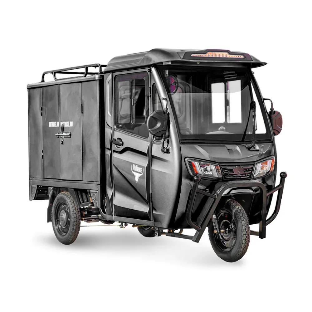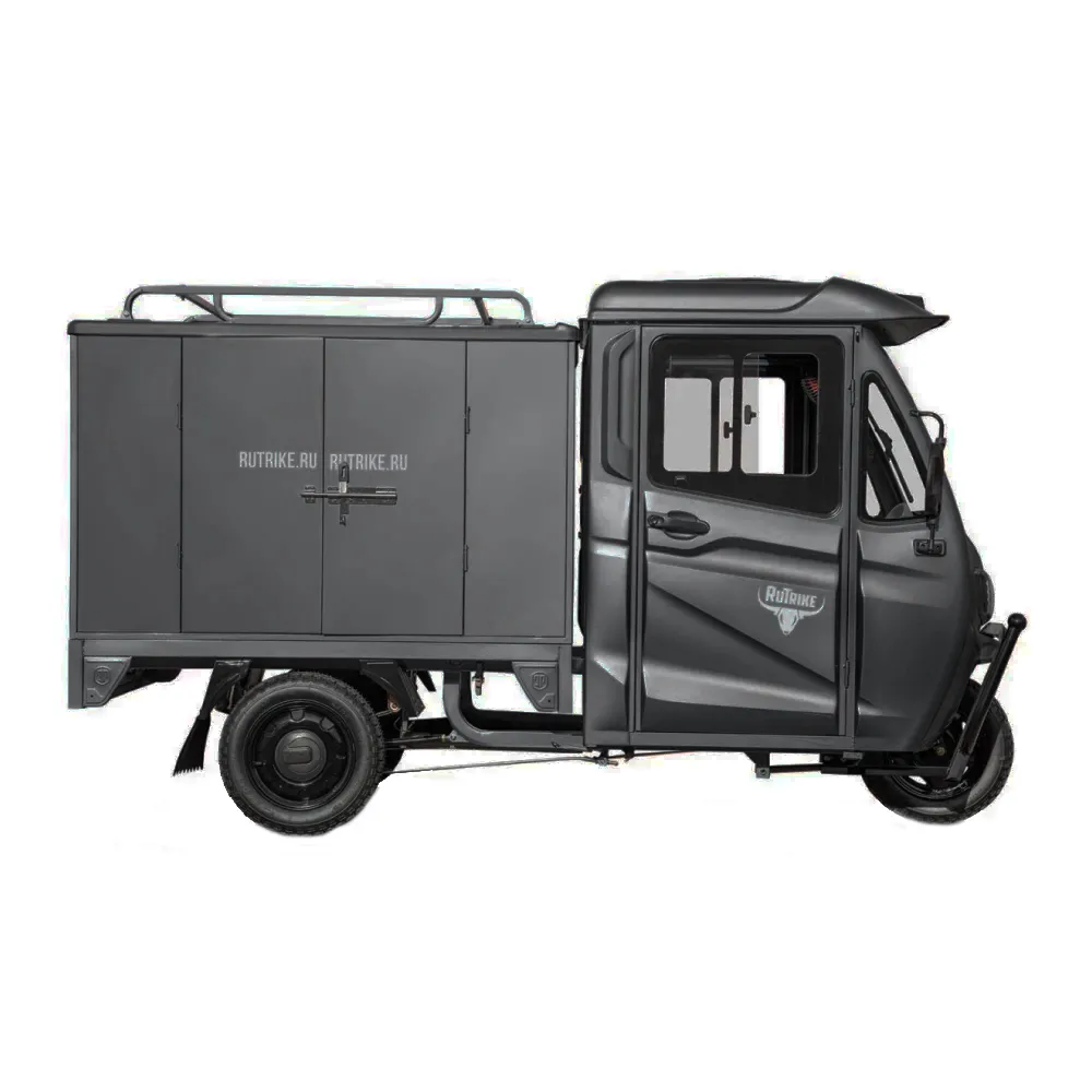 Электротрицикл Rutrike КАРГО Кабина Дуал в стильном матовом черном цвете представляет собой новое слово в сфере грузовых перевозок. Это уникальное, экологически чистое и высокопроизводительное решение для перевозки грузов в городских условиях.