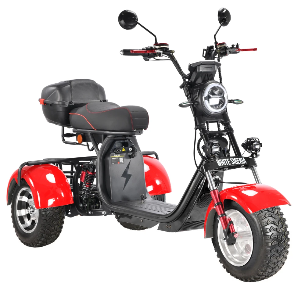 Трехколесный электроскутер CityCoco WHITE SIBERIA pro 3000W TRIKE+ offroad красный