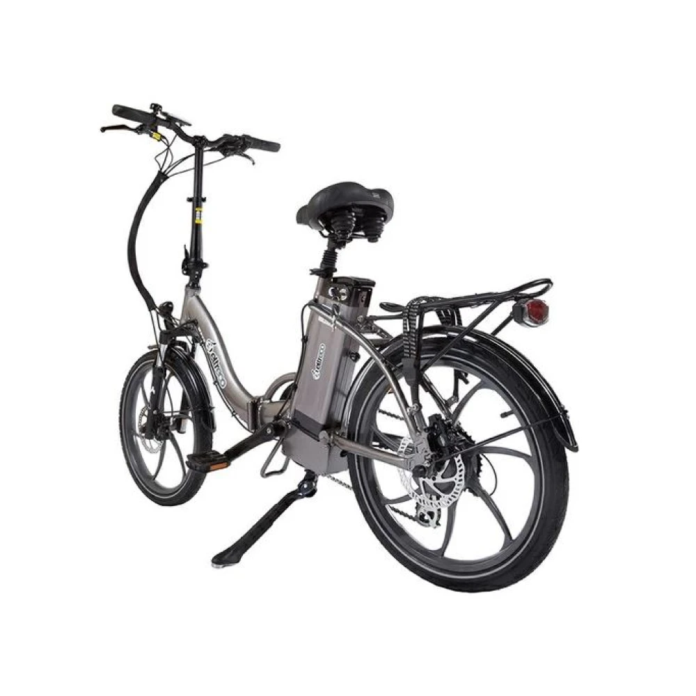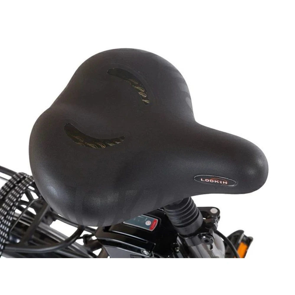 20-дюймовые колеса обеспечивают отличный накат по грунту и асфальту. Удобное регулируемое по высоте седло минимизирует ощущение усталости на длительные расстояния. Информационный дисплей вместе с качественными тормозами увеличивают степень безопасности за счет предоставления информации о скорости, заряде батареи и других параметрах.