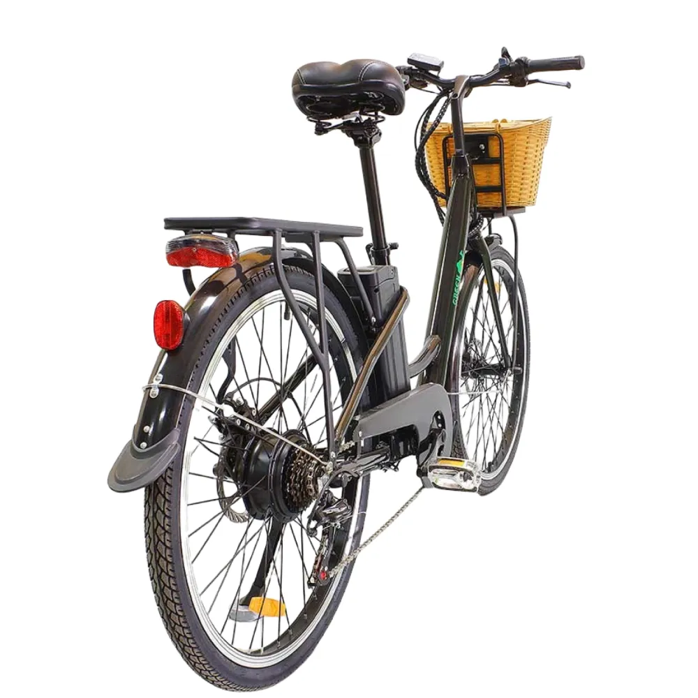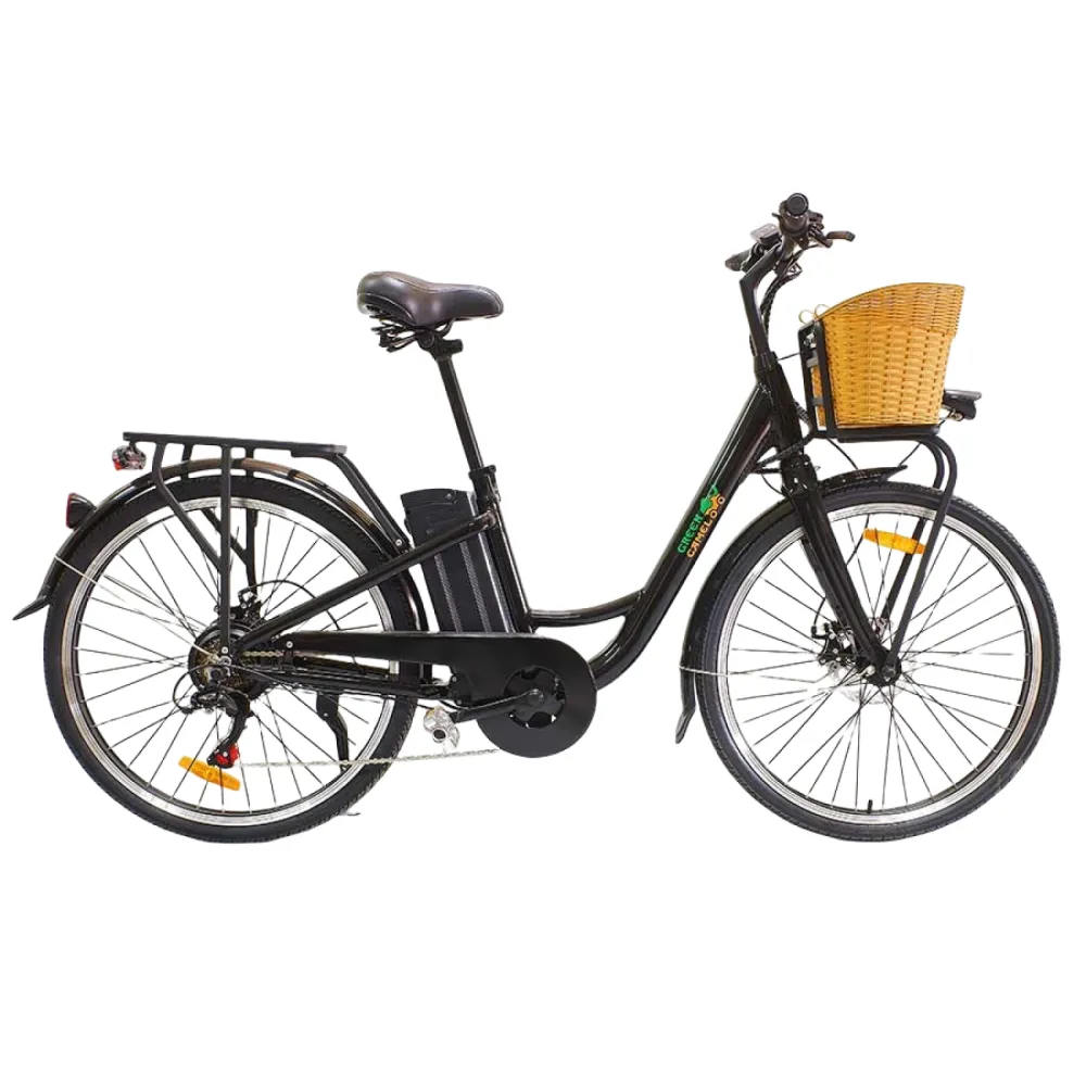 Электровелосипед Грин Кэммэл Бриз (R26 350 Вт 36V 10Ah), шестискоростной классически черный – шикарный городской круизер с высокими показателями комфорта. Предназначен для движения по ровной дороге и парковой зоны. Оснащен объемной передней корзиной, удобной для поездок за продуктами, на базар, вылазки. Приобрести супертехнику по разумной стоимости предлагает наш интернет-магазин.