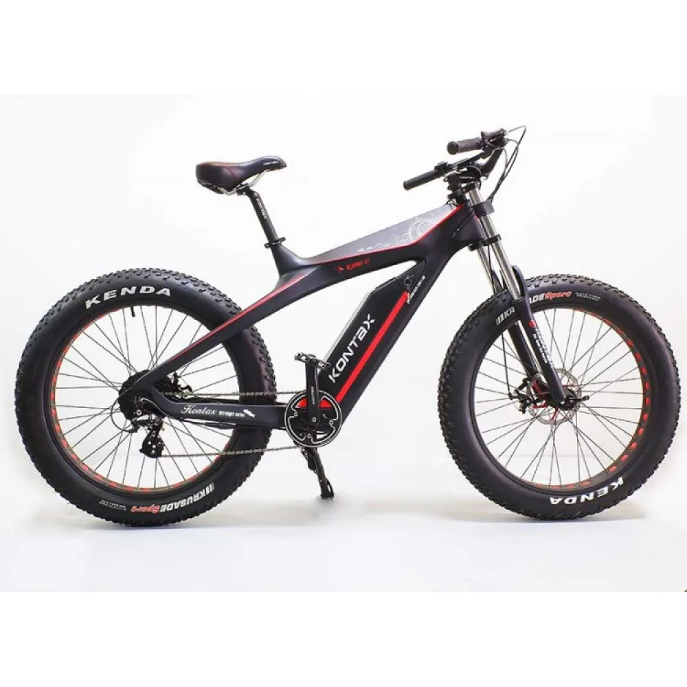 Электровелосипед GreenCamel Kontax (R26FAT 750W Bafang 48V LG 13Ah) - велогибрид от российской компании, предназначенный для поездок по нервным, изрытым, холмистым участкам дорог. Имеет мотор мощностью 750 Вт, показатель разгона скорости которого достигает 45 км/ч. При максимальной нагрузки на карбоновую раму в 120 кг, вес самого транспорта составляет всего 29 кг. Велогибрид оснащен 48 V аккумуляторной батареей ёмкостью 13 Аh, которой достаточно для преодоления расстояния до 50 км. Полное восстановление заряда всего за 5 часов. Лёгкая карбоновый рама хорошо смягчает толчки при езде, а в случае ремонта не утратит своих качеств. Яркий LCD-дисплей 8FUN C18S имеет расположение на руле из алюминиевого сплава, любую информацию системы на нем видно невыносимо от времени суток. Колеса оснащены износостойкими надежными дисковыми тормозами WINZIP.