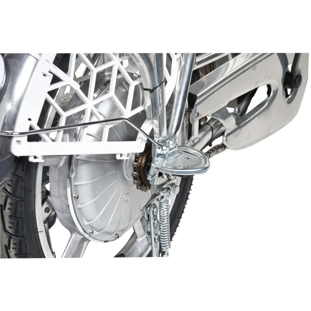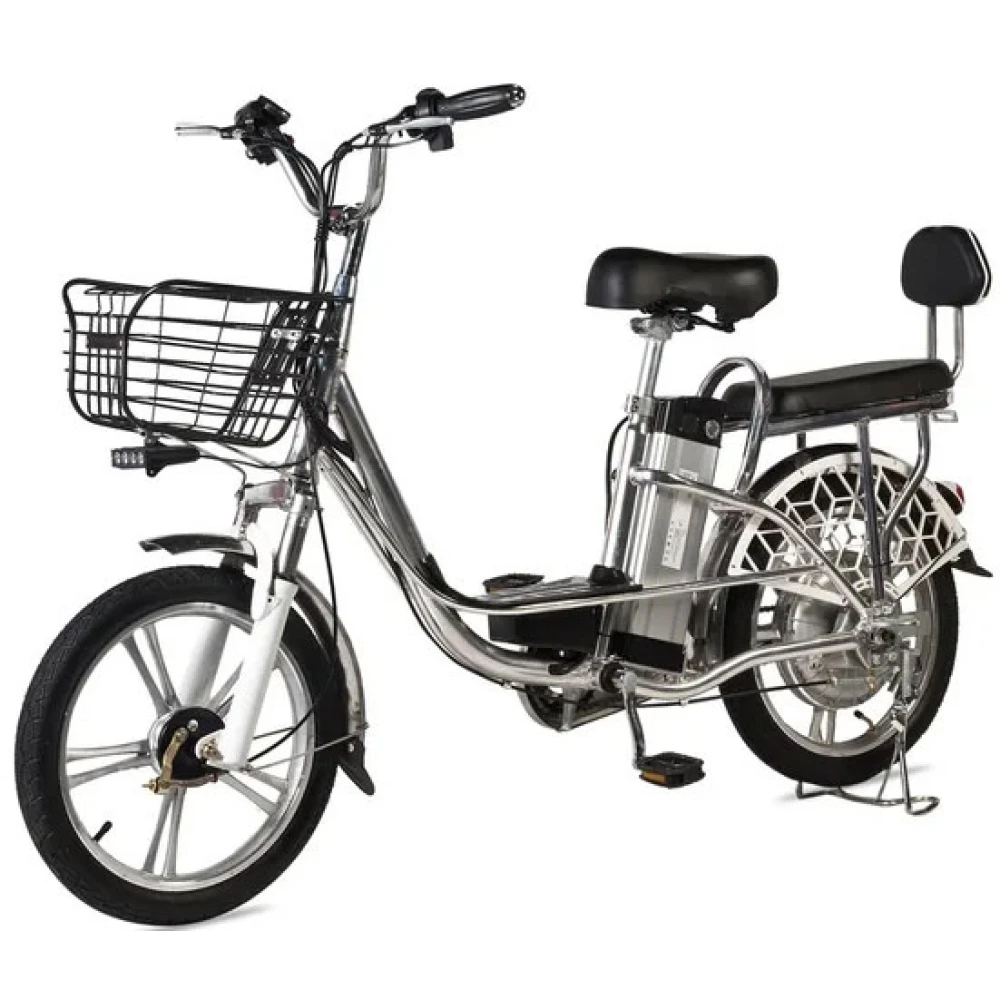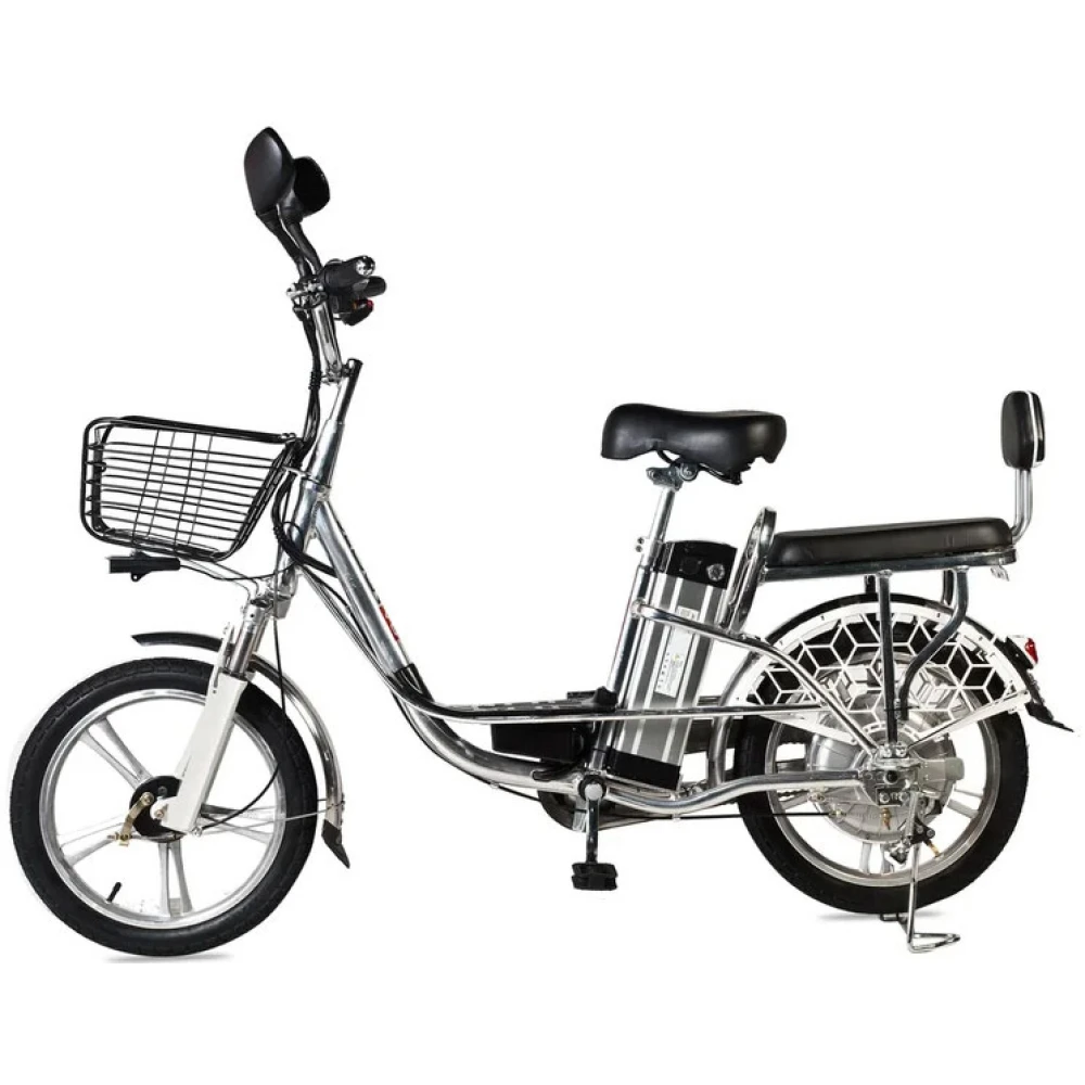 Наличие передней объемной корзины автоматически превращает электровелосипед в каждодневный вид транспорта, удобный для поездки в магазин за продуктами.