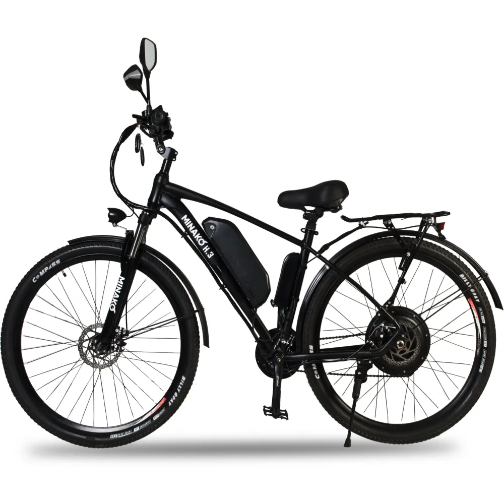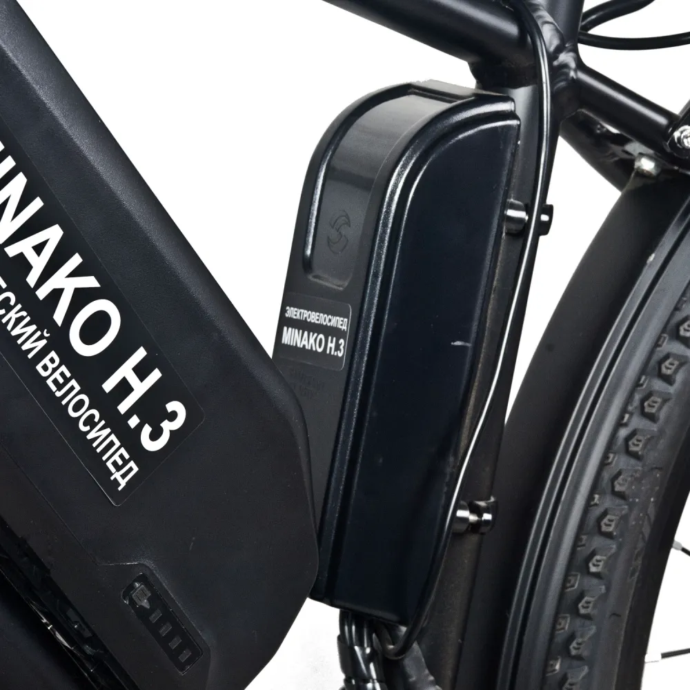 Велогибрид Minako H.3 представляет собой полноразмерный велосипед на 29-дюймовых колёсах. Рама велосипеда выполнена из алюминия, что позволило существо облегчить конструкцию, но никак не потерять в прочности, поэтому максимальная нагрузка – целых 120 килограмм. Аккумулятор крепится непосредственно посередине рамы. Такое решение увеличивает манёвренность и управляемость велогибрида.
