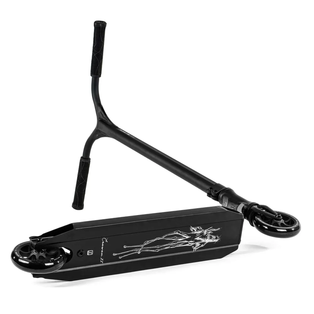 Дека самоката, изготовленная из прочного алюминия, имеет ширину 120 мм и длину 480 мм, что делает ее устойчивой и удобной для выполнения трюков. Дизайн самоката выполнен в строгих черных тонах, что придает ему классический и стильный вид. Все элементы окрашены в черный цвет, создавая единое гармоничное впечатление. Y-образный руль не только стильный, но и функциональный, обеспечивая надежный хват и максимальную управляемость.