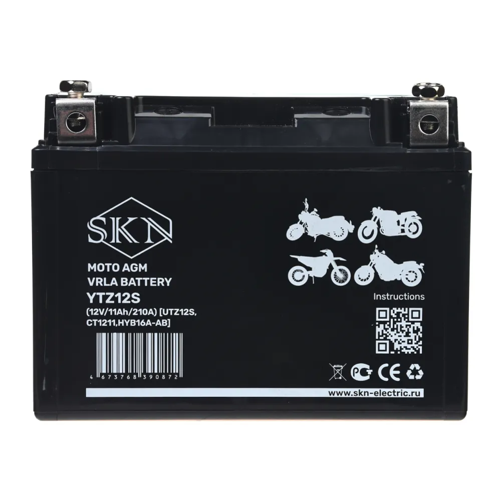 Аккумулятор стартерный для мототехники SKN YTZ12S (12V/11Ah/210A) [UTZ12S, CT 1211, HYB16A-AB]