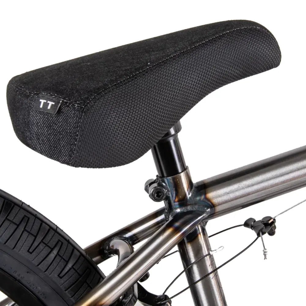 Техника оснащена грипсами 150мм, TRP, имеет вынос Top-load, Al. 6061-T6. Тканевой седло удобное и практичное, повторяет анатомические части тела ездока, минимизирует нагрузку на позвоночник.